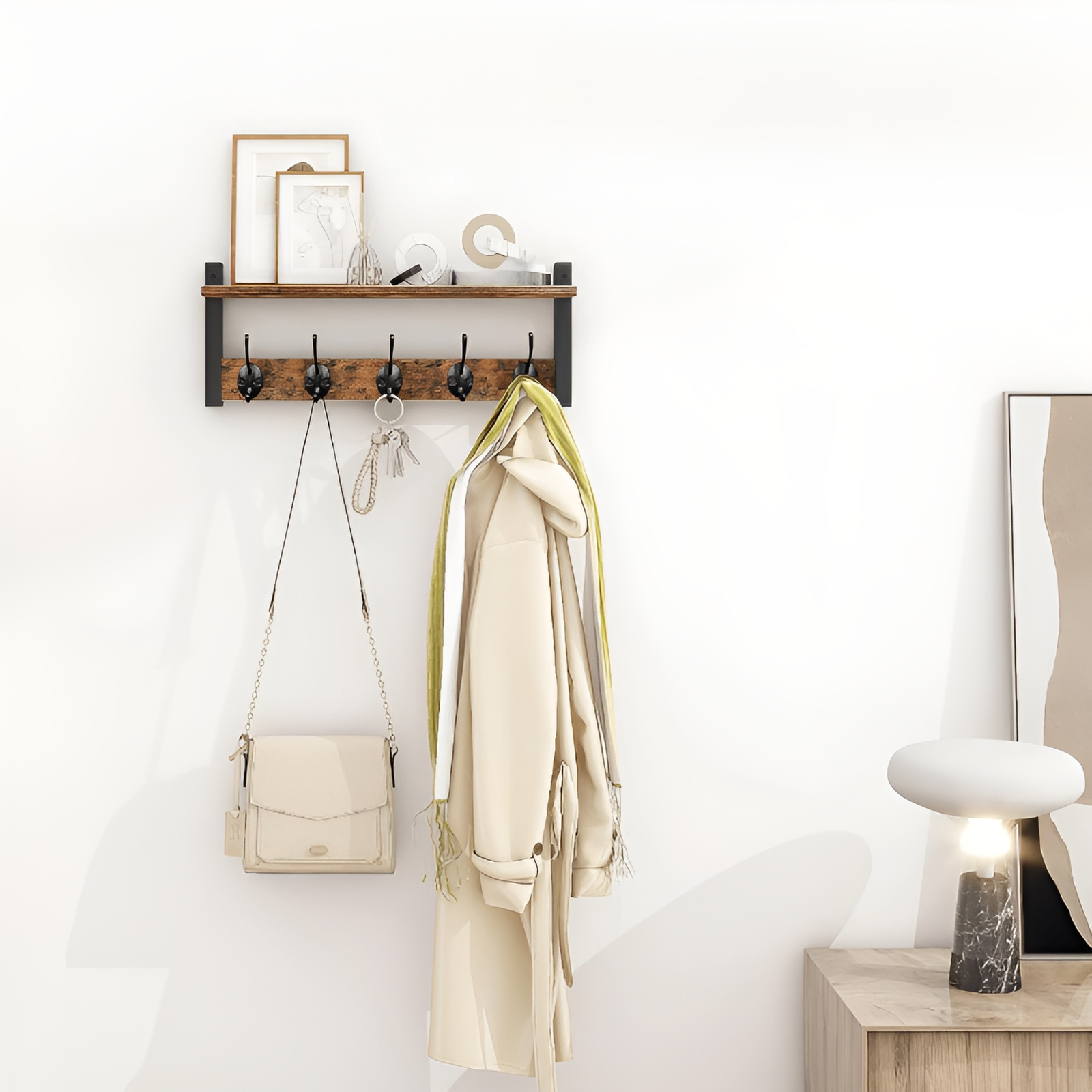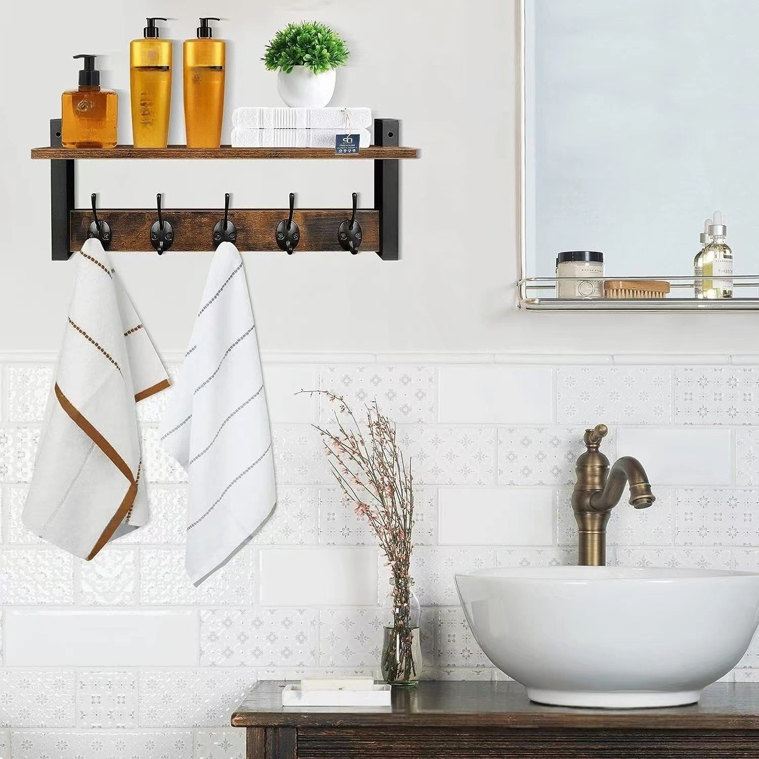 벽면 고정형 원목 수납 선반